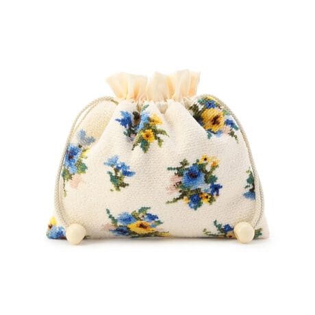 年代問わずお使いいただける『ブラウローゼン』の巾着です。開口部と裏地を艶やかなサテン生地で仕立て、上品なかわいらしさを演出しました。お直し用コスメやモバイルグッズなど、お出かけの必需品をまとめるのにぴったりなサイズ感。バッグの中で見失いがちな貴重品の整理など、さまざまな用途で役立つアイテムです。