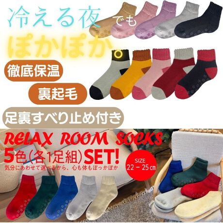 マルイウェブチャネル   /   レッグウェア   /   ソックス・靴下   /   超極厚ルームソックス 口ゴムゆったり 裏起毛 足裏滑り止め付き 5足セット 22−25CM