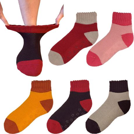 生地はあったかアクリル素材、裏地は裏起毛加工しており、足裏に滑り止めがついていてとても柔らかく暖かいルームソックスです。
