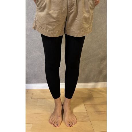 ・リブ編みデザインで脚をすっきり見せる細見え効果。