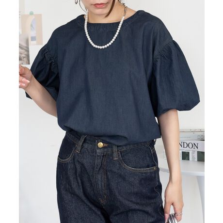 パフスリーブデニム半袖シャツ