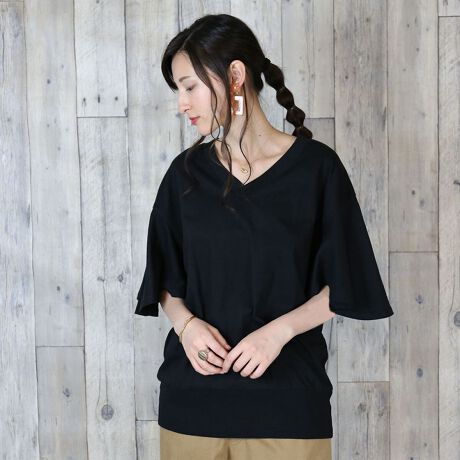 フレア袖Vネック半袖カットソー