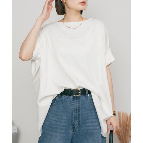 カジュアルになりすぎず首周りを美しく見せるボートネック、身体のラインを拾わず、動きやすい。