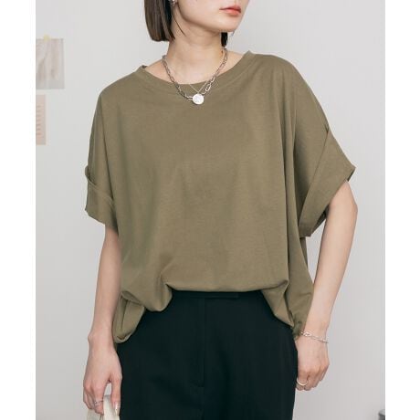 ゆるっとラフなシルエットのドルマンTシャツ。