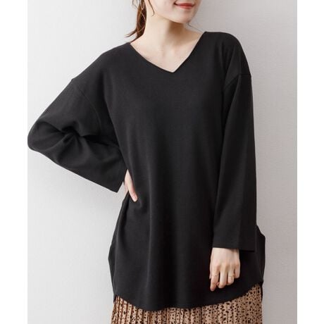 長めの着丈でヒップの気になるラインを隠しリラクシングに体型もカバー。