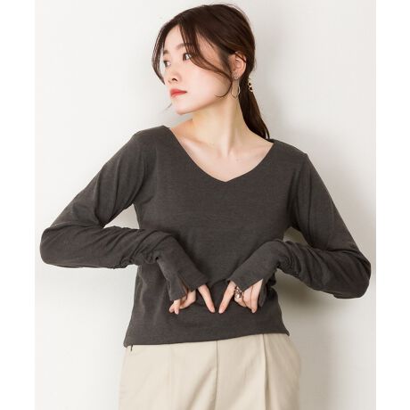 指穴付きVネックカットソー