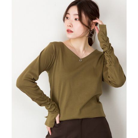 首元をすっきり見せてくれるVネックで小顔効果はもちろん、スタイルアップ効果も叶う♪