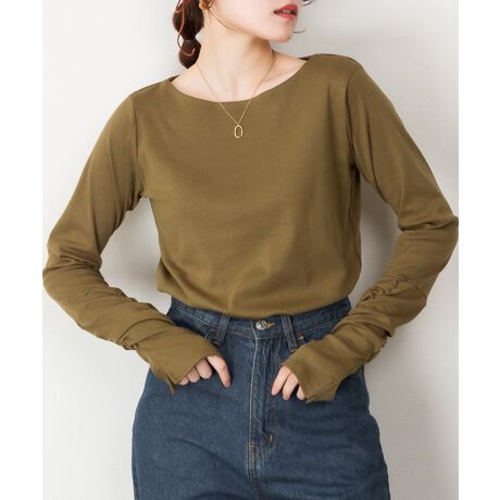 指穴付きボートネックカットソー