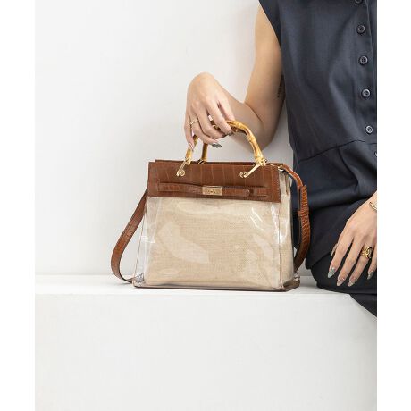 ・バンブーハンドルとベルトデザインがきれいめな印象