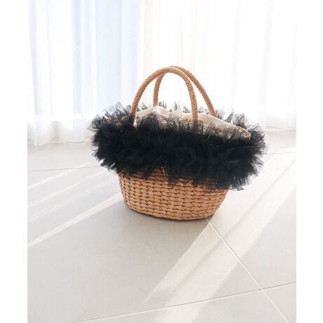【カゴバッグ/リゾート/プレゼント】チュールフリルカゴバッグ