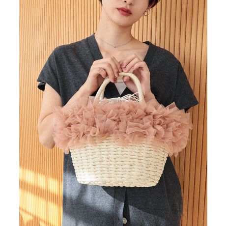 【カゴバッグ/リゾート/プレゼント】チュールフリルカゴバッグ
