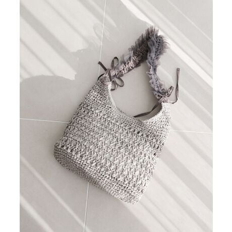 【カゴバッグ/リゾート/軽量】ペーパー×チュールフリルワンショルダーバッグ