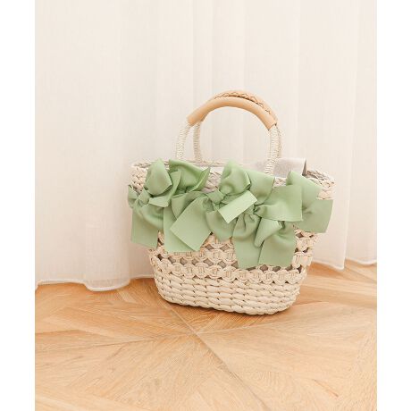 大きなリボンがたっぷり付いた大人可愛いカゴバッグ