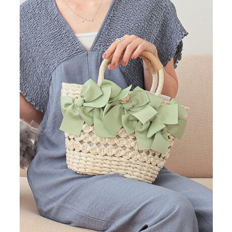 大きなリボンがたっぷり付いた大人可愛いカゴバッグ
