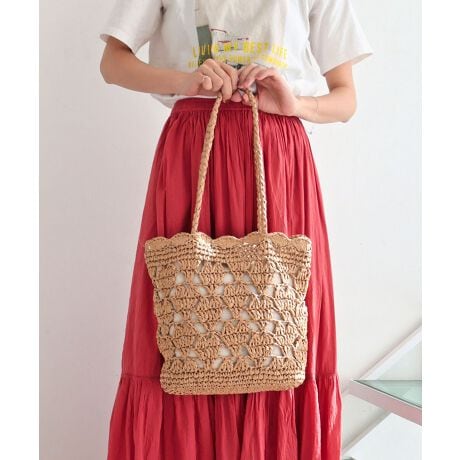 【カゴバッグ/リゾート/軽量】ハートモチーフ編みペーパートートバッグ