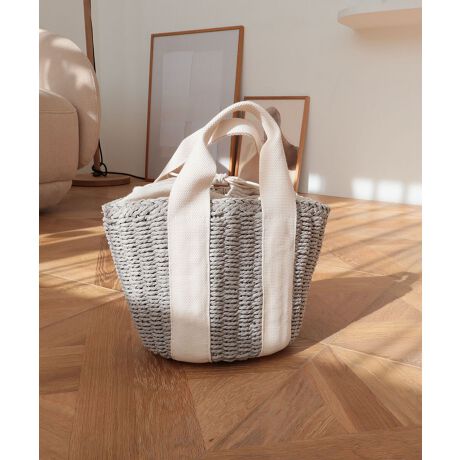 【カゴバッグ/リゾート/軽量】口元巾着ハンドルテープペーパートートバッグ