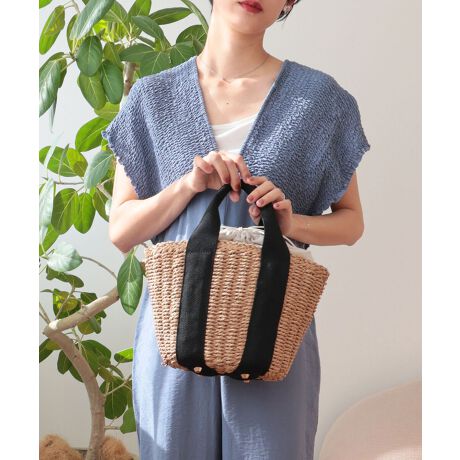 【カゴバッグ/リゾート/軽量】口元巾着ハンドルテープペーパートートバッグ
