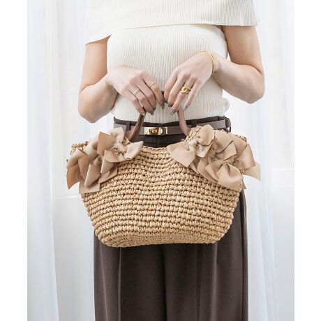 【デイリー/カゴバッグ/ミディアムサイズ】サイドリボンペーパートートバッグ