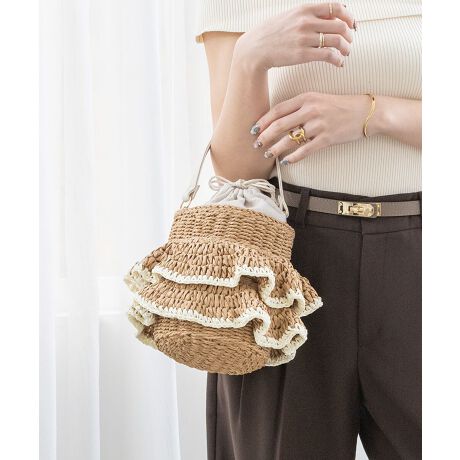 たっぷり付いたフリルが目を惹く2wayかごバッグ