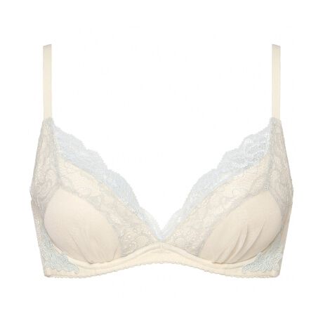 ブラジャーの前中心が低く、カップ脇が高いパターンのディープVシルエット。カップ下がシャープなので、きれいな谷間を作ります。