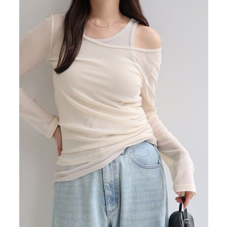 シアー タンクトップ & チュール 長袖 トップス【2点セット】