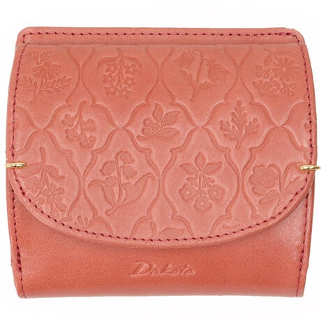 [型番:31920]白なめしの牛革を1枚1枚、丁寧に色付けしました。ナチュラルな質感を残しつつ、済んだ綺麗な色合いを表現しています。前面に型押しされた柄は様々な草花をイメージしました。草花たちの優しい魅力に繊細な金具が華を添えます。