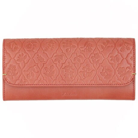 [型番:31923]白なめしの牛革を1枚1枚、丁寧に色付けしました。ナチュラルな質感を残しつつ、済んだ綺麗な色合いを表現しています。前面に型押しされた柄は様々な草花をイメージしました。草花たちの優しい魅力に繊細な金具が華を添えます。
