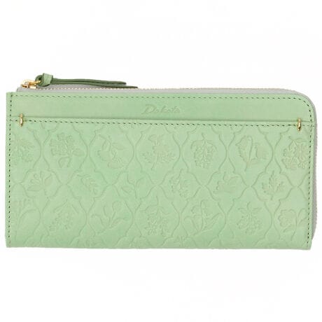 [型番:31924]白なめしの牛革を1枚1枚、丁寧に色付けしました。ナチュラルな質感を残しつつ、済んだ綺麗な色合いを表現しています。前面に型押しされた柄は様々な草花をイメージしました。草花たちの優しい魅力に繊細な金具が華を添えます。