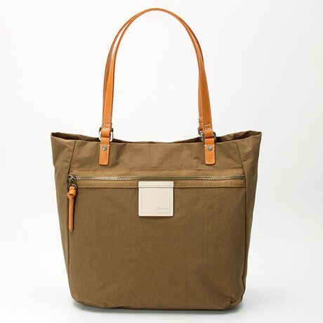 [型番:1531771]軽さとハリ感が魅力の国産ナイロンを使用したバッグです。ファスナーテープに施したプリントと革ラベルがぴったりと合い、シンプルな中にアクセントを与えてくれます。