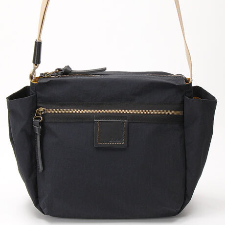 [型番:1531773]軽さとハリ感が魅力の国産ナイロンを使用したバッグです。ファスナーテープに施したプリントと革ラベルがぴったりと合い、シンプルな中にアクセントを与えてくれます。