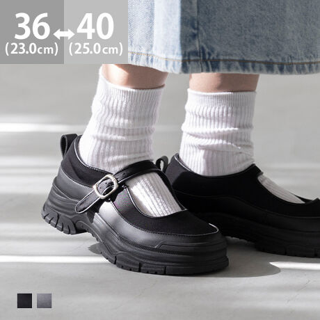 厚底なのに重く見えない、ほどよいボリューム感がポイントのメリージェーンスニーカー。