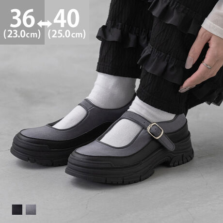 厚底なのに重く見えない、ほどよいボリューム感がポイントのメリージェーンスニーカー。