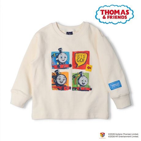 crescentから人気の「きかんしゃトーマス」デザインアイテムが登場。トーマス、パーシー、ニアのプリント入りのトレーナー、スウェット。袖口にはロゴのワッペン付き。秋から春まで長く着られる裏毛素材。綿100%でギフトやプレゼントにもオススメ!【アイテム】トップス カジュアル お洒落 オシャレ かっこいい かわいい 可愛い 普段着 デイリーウェア お出かけ着 お外着 お外遊び着 子ども服 こども服 男児 男の子 ボーイズ キッズ ベビーサイズ トドラーサイズ 幼稚園 保育園 小学校 通園 通学 小学生 2026年春夏物新作 丸高衣料 ロングスリーブ 長袖 オフホワイト 白色 ネイビー 紺色 クレセント コットン100% 綿100%