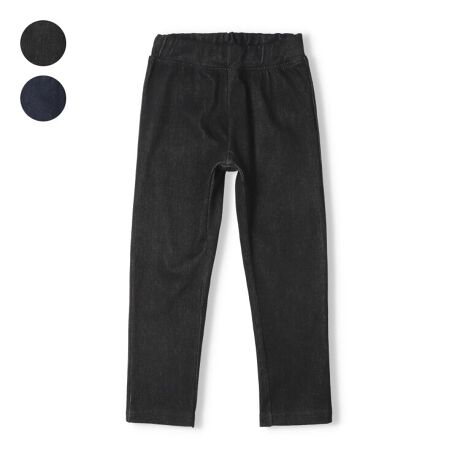 プチプライスが嬉しい!保育園や幼稚園、学校の通園、通学にもデイリー使いにオススメなロングパンツ、長ズボン。薄手の柔らか素材で履かせやすい!どんなアイテムとも合わせやすいカットデニムのブラックとネイビーの2色展開。男の子も女の子もユニセックスで着られるシンプルでベーシックなデザイン。【アイテム】シンプル ベーシック 無地 カジュアル お洒落 オシャレ かっこいい かわいい 可愛い 普段着 お外着 お外遊び着 デイリーウェア お出かけ着 ロング丈 長丈 長ズボン フル丈  ボトムス 子ども こども 男児 男の子 ボーイズ キッズ ベビーサイズ トドラーサイズ 幼稚園 保育園 小学校 通園 通学 小学生 2026年春夏物新作 丸高衣料 女児 女の子 ガールズ 男女兼用 デイリーウェア ブラック 黒色 ネイビー 紺色