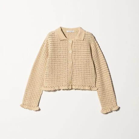 小さなフリルが愛らしいクロシェニットカーディガン