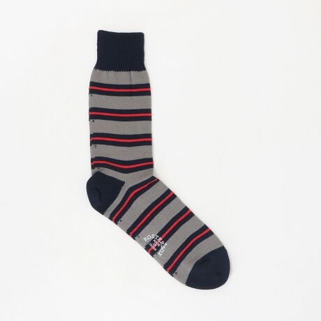 クラシックなボーダー柄をベースに、配色のコントラストで程よいアクセントを添えた一足。