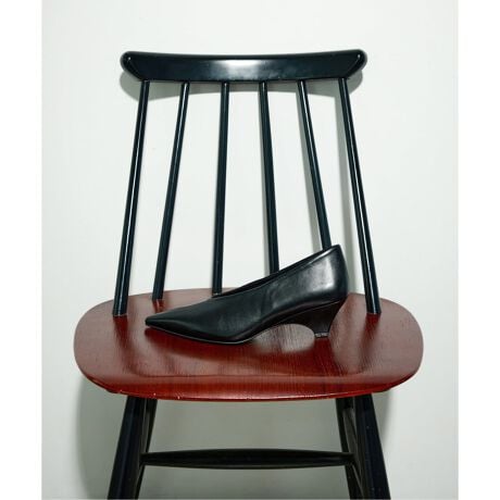 すっと伸びたトウ先とウエッジヒールの程よいボリューム、スクエアなフォルムの踵まわりで、シンプルながらも構築的なシルエットに仕上げました。