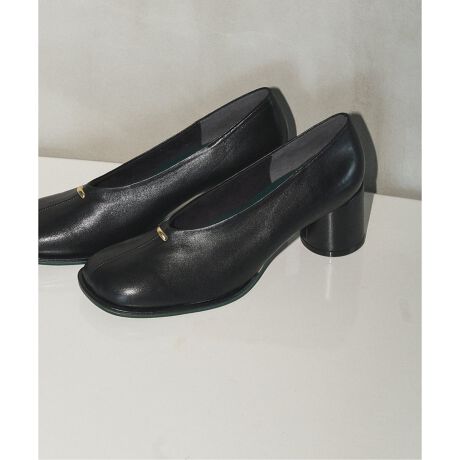 革巻きピースでつま先に程よいボリュームをつけ、フロントのメタルパーツで表情のある印象に。