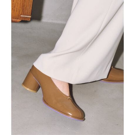オブリークトウとシリンダーヒールでトレンド感のある足元が完成するパンプス。