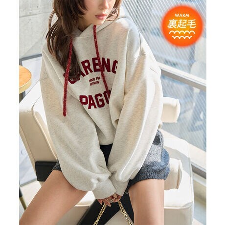 [ 裏起毛 ] カラフルストリングロゴパーカートップス [C7832]
