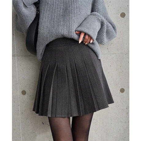 上品でなめらかなフェイクウール生地に、太めのプリーツ加工を施した秋冬にぴったりの1着です。
