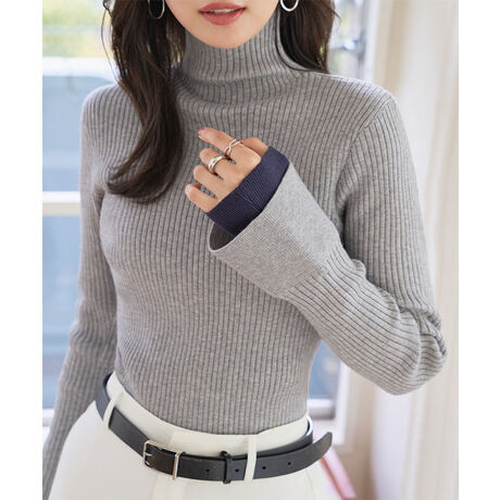 メリハリのあるスタイルに仕上げキャミワンピやビスチェなどレイヤードスタイルのインナー使いにも重宝するハイネックニットです。