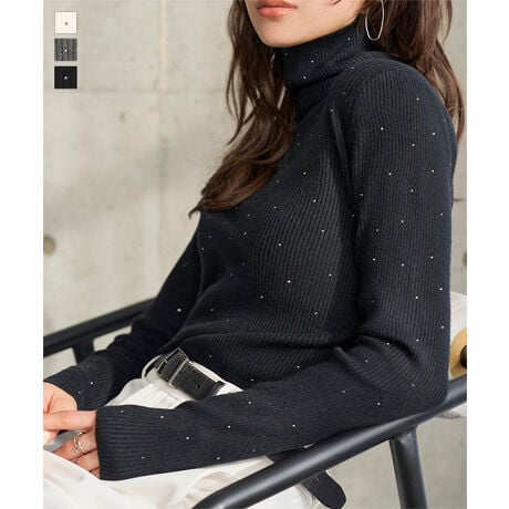 ベーシックなリブニットにレディさが加わり一枚でも華やかな印象に仕立ててくれる大人トップスです。