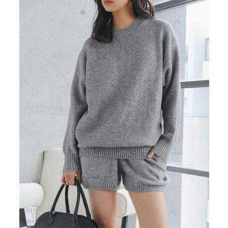 シンプルなクルーネックニットとショートパンツの2点セットで洗練されたセットアップコーデに。