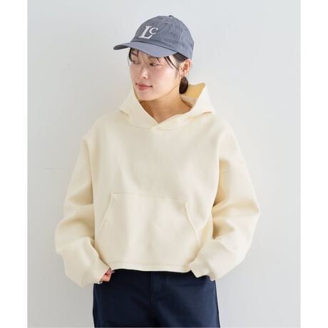 ・フードのカジュアル感を抑えるため、裾はリブなしですっきりとした印象に仕上げています