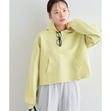 ・フードのカジュアル感を抑えるため、裾はリブなしですっきりとした印象に仕上げています