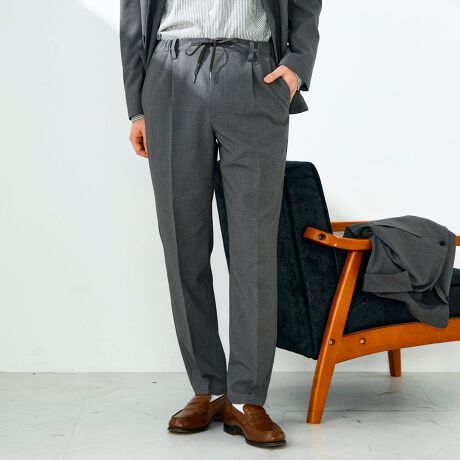 ・ウエストドローコード仕様のイージー設計でラクな穿き心地。見た目はスラックスなのにストレスフリー