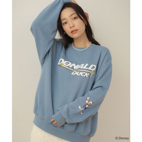 腕を組んだときに「ミッキーマウス」と「ミニーマウス」、「ドナルドダック」と「デイジーダック」が重なるように袖にプリントされているのがポイント。ユニセックスで着られるサイズ感も魅力です。ぜひペアルックで着ていただきたいアイテムです。