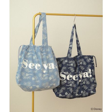 トレンドの抜染デニム生地と左右に施されたドロストがポイントのトートバッグ。シャツと同素材になっているので合わせて身につけても単品でも可愛いアイテム。大容量サイズで普段使いや旅行など様々な場面で活躍間違いなしです。透け感[なし]