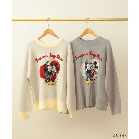 可愛らしい「ミッキーマウス」と「ミニーマウス」があしらわれたチャーミングなジャガードニット。ジャガード編みかつロゴ部分も立体刺繍になっているので高見え間違いなしです。ややゆったりめなサイズ感にもこだわりました。透け感[なし]